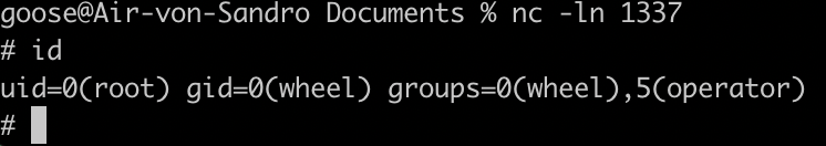 Listening on the port we specified, and installing the package using sudo pkg install we will have our reverse shell, as root, which can be upgraded if needed. But it is enough to get the flag and run...